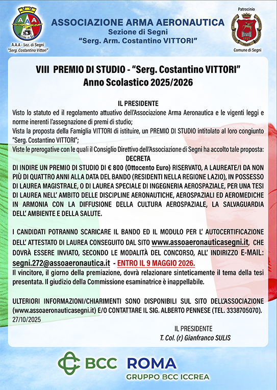 Premio di Studio istituito dietro proposta della famiglia Vittori in ricordo del proprio congiunto "Serg. Arm. Costantino VITTORI".